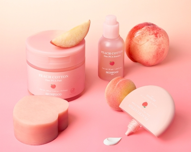스킨푸드 ‘피치뽀송 징크피씨에이’ 3종을 올리브영에 선보인다.