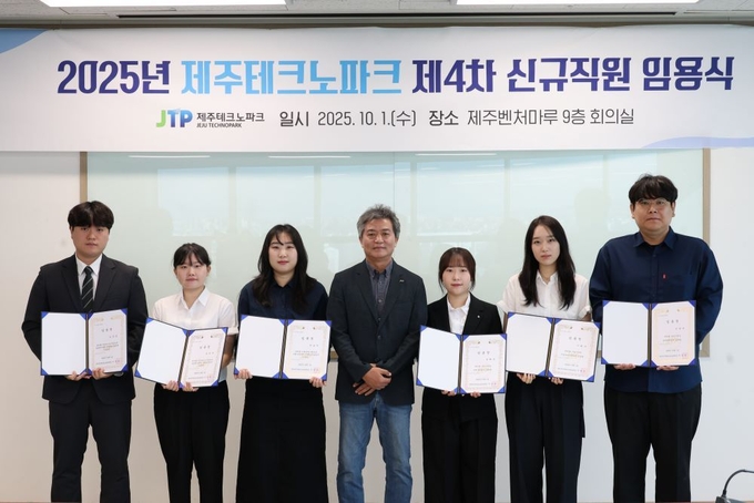 이번 신규 직원 임명은 지난 6월 실시한 제주특별자치도 공공기관 통합공채에 따른 것이다. 제주TP는 통합공채를 통해 △ 기업육성을 위한 사업기획 △ 용암해수 활용과 생산장비 운영 △ 빅데이터센터와 관련한 미래신산업 △ 경영지원 분야에 6명을 채용했다.