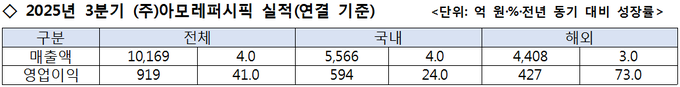 주력 계열사 (주)아모레퍼시픽의 매출은 전년동기 4.0%, 영업이익은 41.0% 증가했다.