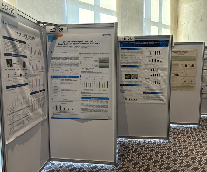 포스터는 △ 나이아신아마이드/트라넥삼산 고함량 제형의 유화 안정화 연구 △ 자소엽, 개똥쑥, 히비스커스 복합추출물의 가려움증 완화 및 피부 진정 등을 포함한 134건이 발표됐다.