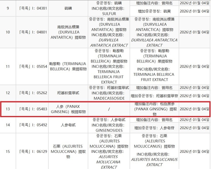 중국국가약품감독관리국(이하 NMPA)이 지난 4일자로 ‘기 사용화장품 원료목록’을 조정, 흑삼추출물을 포함한 3종의 원료를 기 사용원료로 관리한다고 공고했다.