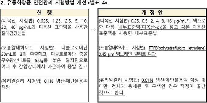 이번 개정(안)에는 유통화장품 안전관리 시험방법 중 시험검사기관 등 현장에서 제안한 시험법을 반영, 전 처리법을 간소화하는 등 화장품 안전관리의 효율성을 높이기 위한 조치도 취했다.