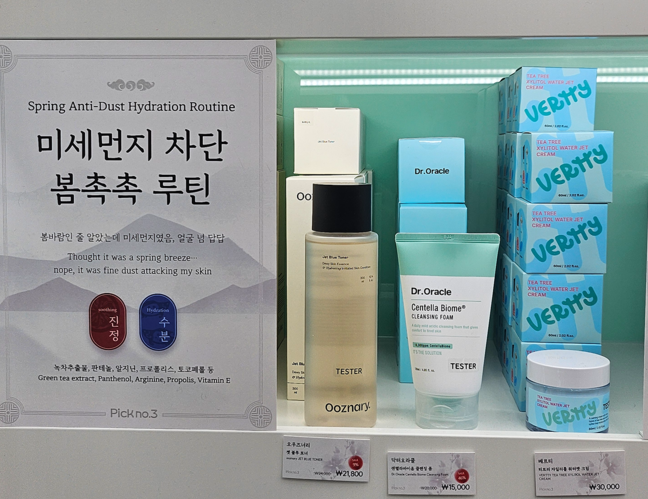 이곳에선 피부 진정‧미백‧주름‧모공‧트러블‧광채 관련 제품 세가지를 선별해 제시한다. 브랜드 중심이 아닌 고객 중심 큐레이션을 통해 차별화된 쇼핑 경험을 제공할 전략이다.