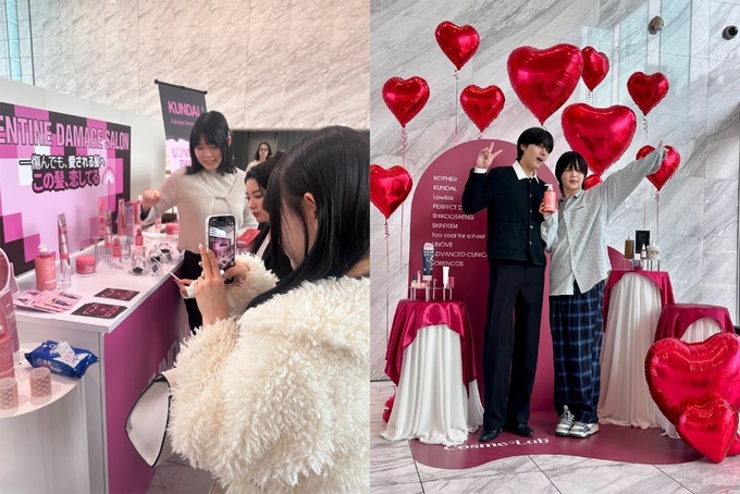 이번 팝업은 ‘밸런타인 데미지 살롱’(Valentine Damage Salon)을 테마로 구성했다. 핑크 톤의 공간 연출과 하트 오브제를 활용해 밸런타인 시즌 무드를 강조했으며 일본 소비자들의 감성을 반영한 테마 구현으로 방문객들의 이목을 끌었다.