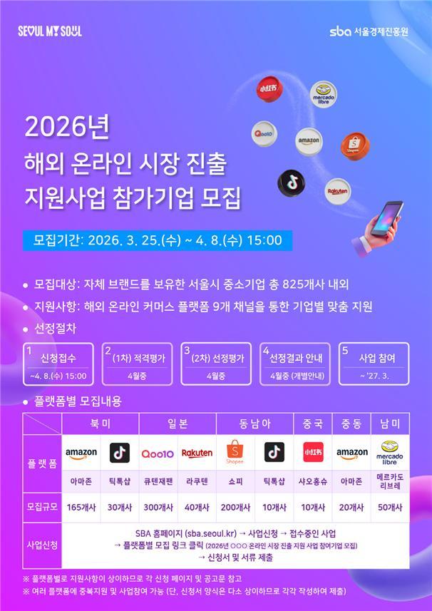 서울경제진흥원(대표 김현우)이 4월 8일까지 ‘2026 해외 온라인 시장 진출 지원사업’ 참여기업 840개사를 모집한다.