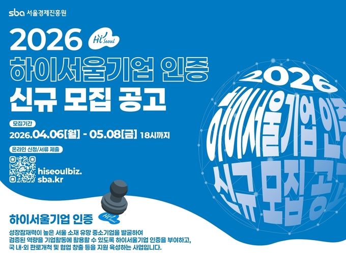 서울경제진흥원(대표 김현우)이 5월 8일(금)까지 ‘2026 하이서울기업’ 100개사를 모집한다.