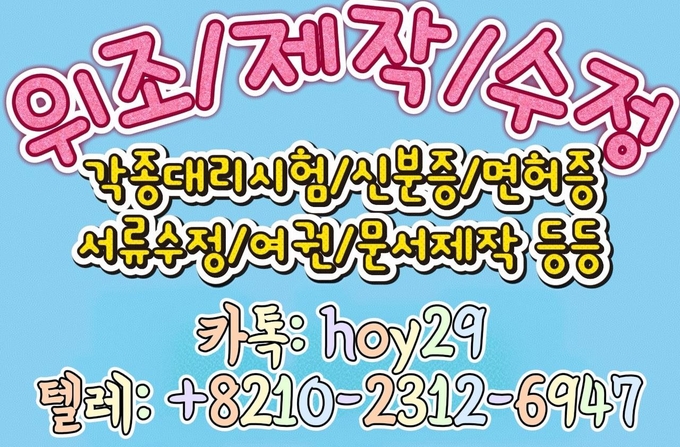 #문자위조 #입금확인서위조 #번호판위조 #비자위조 #외국인등록증위조 #생활기록부위조 #학력증명서위조 #성적증명서위조