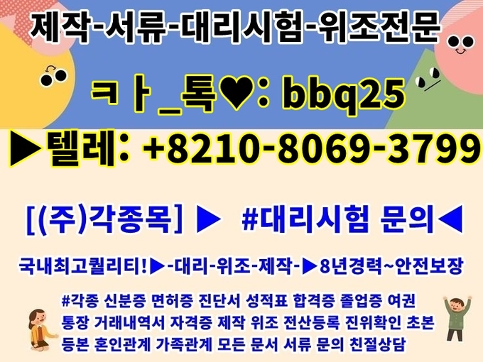 각종신분증 각종증명서 각종서류 각종대리시험 면허증위조전문업체