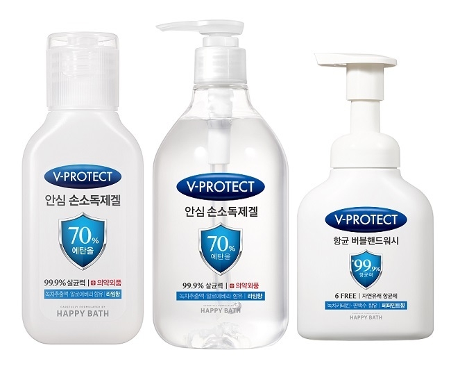 일상 속 작은 행복의 순간을 전하는 토털 바디케어 해피바스가 온 가족 건강을 위한 99.9% 안티 박테리아 효과로 유해 물질을 말끔하게 제거하는 V-프로텍트 라인을 출시했다. V-프로텍트 안심 손 소독제 겔은 70% 에탄올 함량으로 빠르고 강력하게 유해 세균을 99.9% 살균한다.
