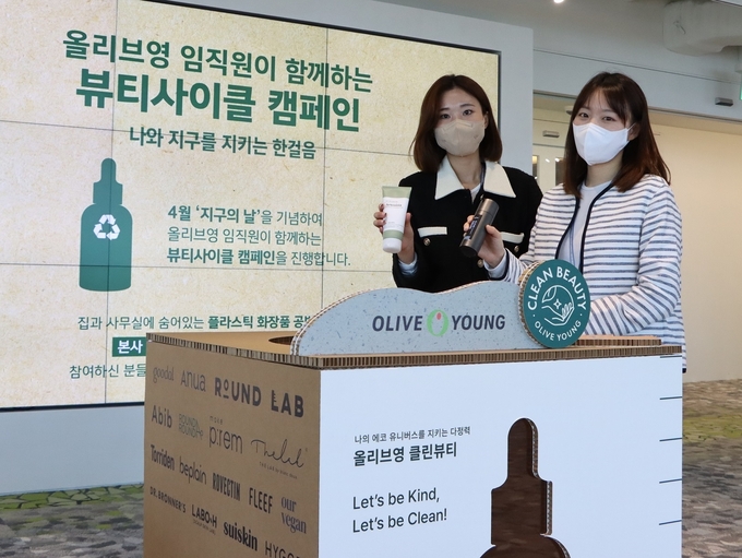 올리브영이 22일 지구의 날을 기념해 임직원과 함께 뷰티사이클 캠페인을 펼친다.