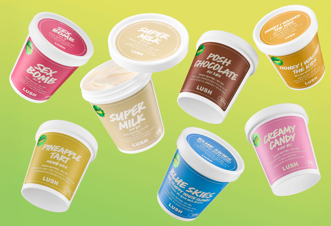 보디 버터 7종은 △ 블루 스카이스 앤드 플러피 화이트 클라우즈 △ 섹스 밤 △ 수퍼 밀크△ 크리미 캔디 △ 파인애플 타르트 △ 포쉬 초콜릿 △ 허니 아이 워시드 더 키즈 등으로 나왔다. 각각 100mL와 230mL 두 가지 용량으로 만날 수 있다.
