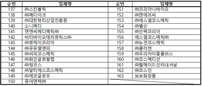 이와 함께 대한화장품협회 회원사(수주기업)의 수도 늘어났다. 기존 125곳이었으나 K-뷰티론 사업을 진행하는 기간 동안 38곳이 더 늘어나 모두 163곳으로 확대됐다.