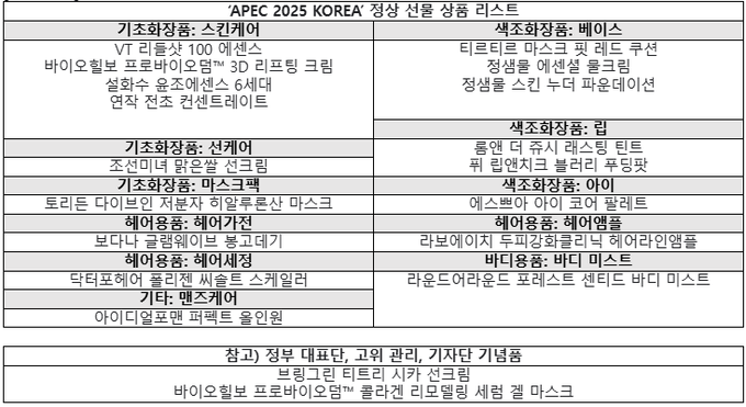 올리브영이 ‘APEC 2025 KOREA’를 방문한 각국 정상들에게 K-뷰티 패키지를 선물했다.