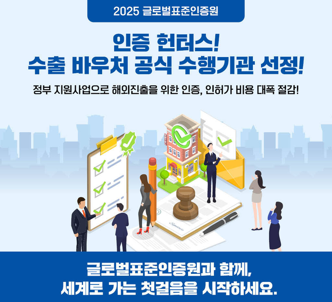 글로벌표준인증원(대표 전재금)이 수출바우처 사업 수행기관으로 선정됐다.