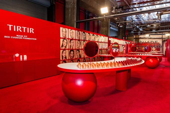 팝업스토어에는 아마존 미국 뷰티 부문 1위를 기록한 ‘마스크 핏 레드 쿠션’을 전시했다. 또 국내 베스트셀러인 ‘마스크 핏 AI 필터 쿠션’과 ‘워터리즘 글로우 틴트’ 등을 소개했다. 방문객들은 다양한 제품을 사용하며, 티르티르 제품의 컬러감과 피부 표현력을 체험했다.