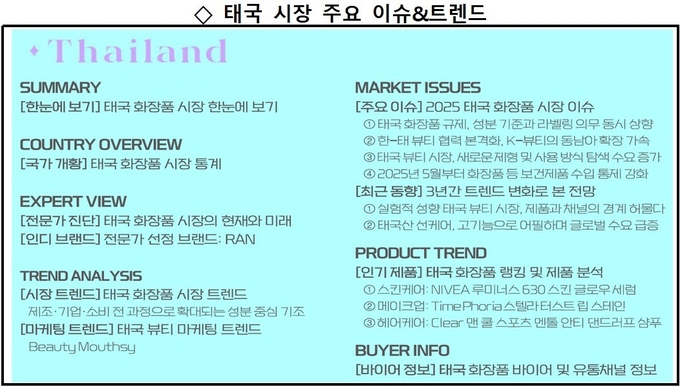 이러한 내용은 대한화장품산업연구원(원장 조신행· www.kcii.re.kr ·이하 화산연)이 발간한 ‘2025년 글로벌 코스메틱 포커스-태국·베트남’ 편에서 확인할 수 있다.