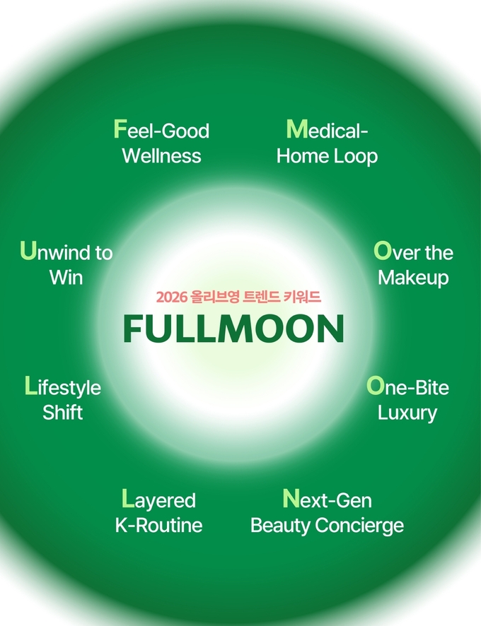 올리브영은 내년 K-뷰티와 웰니스 산업 트렌드를 ‘FULLMOON’으로 제시했다. 둥근 보름달은 온전함‧완전성‧충만함을 상징한다. 2026년에는 흩어져 있던 삶의 조각들이 서로 연결되고 융합된다. 일상과 경험이 통합·균형·조화를 이루며 완전한 나(Wholeness)를 완성한다. 내년 뷰티&웰니스 업계에선 ‘온전한 나’를 찾기 위한 소비 흐름이 뚜렷해질 전망이다.