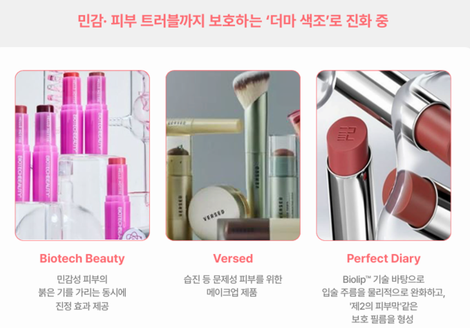 메이크업과 트러블 케어를 결합한 더마 색조 시장도 커지는 추세다. 시술 직후 부담 없이 사용 가능한 ‘메디컬 메이크업‘ 제품 수요도 늘고 있다.