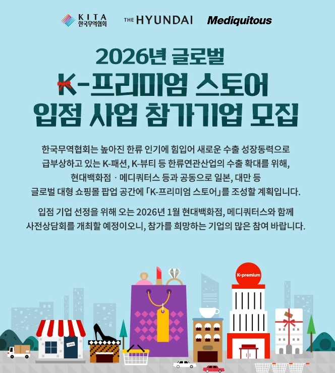 이번 사업은 한국무역협회와 현대백화점‧메디쿼터스가 공동 주최한다. 한류 대표기업 40곳과 K-프리미엄 스토어를 확대하며 수출 길을 넓힐 전략이다.