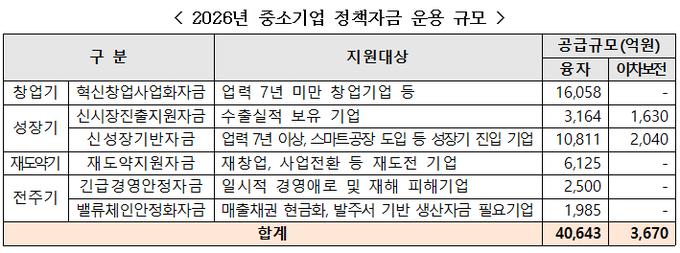 중소벤처기업부(장관 한성숙, 이하 중기부)는 22일(월) ‘2026년 중소기업 정책자금 운용계획’을 발표했다.