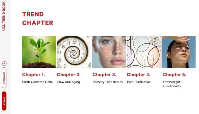 이러한 변화 흐름을 바탕으로 유씨엘은 2026년 스킨케어 트렌드를 △ Earth-Centered Calm △ Slow Anti-Aging △ Sensory&Tech Beauty △ Post-Purification △ Featherlight Efficacy 등 다섯 가지로 정리했다.