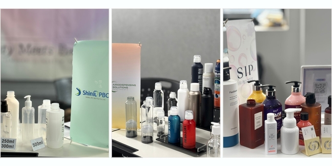 패키징 3사는 지속가능성을 담은 용기‧부자재를 전시했다. 신일피비씨는 내용기와 외용기를 분리할 수 있는 친환경 에어리스 용기를 소개했다. 에어로디스팬싱솔루션은 유해가스 없는 에어로졸 시스템을 설명했다. 또 무한 재활용이 가능하고 RE100으로 생산한 알루미늄 용기를 선보였다. 에스아이피는 PCR 100% 용기와 밀짚으로 만든 바이오PE 용기를 개발했다.