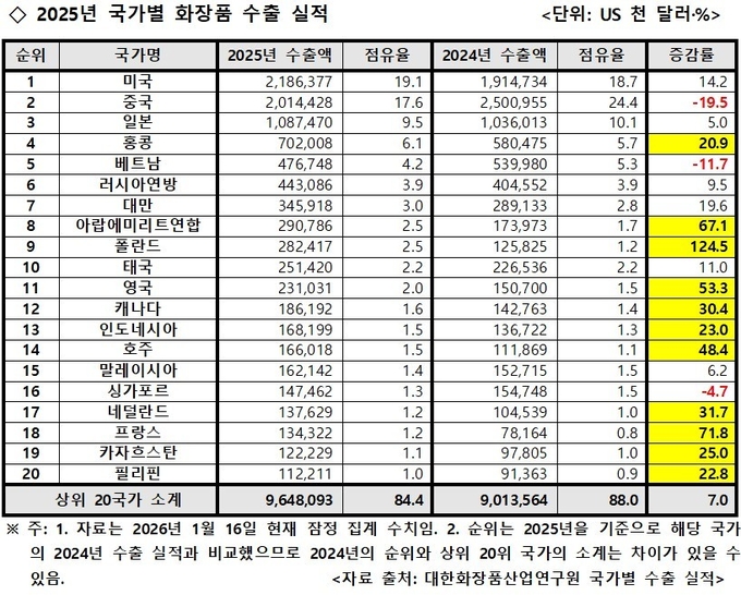 2025년 국가별 화장품 수출 실적을 3회에 걸쳐 분석한다. <편집자 주>