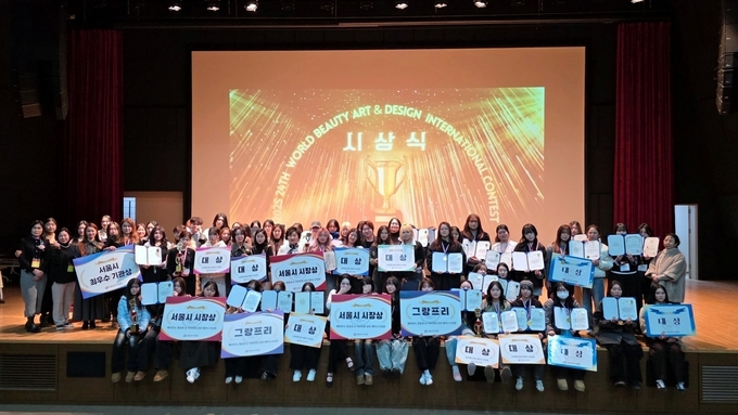 용인예술과학대 뷰티케어과는 국내외 참가자들과 경합을 펼쳐 전공 역량과 창의력을 입증했다. 이번 공모전을 지도한 강경화 뷰티케어과 학과장과 김진희 교수는 최고 지도자상(국회의원상)을 수상했다.