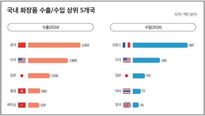 또 색조화장용 제품류는 지난 2024년 13억4천500만 달러를 마크하면서 3위 수출 품목에 랭크됐다. 2020년부터 2024년까지 5년간 연평균 성장률은 17.9%에 달했다. 특히 색조화장용 제품류의 연평균 성장률은 임플란트의 5년간 연평균 성장률 23.6%에 이어 수출 품목 가운데 두 번째로 높은 수치를 기록했다.