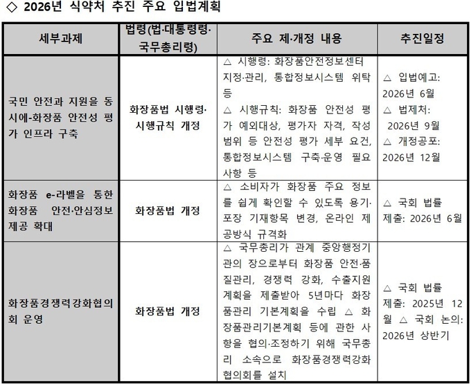 식약처는 가장 먼저 ‘화장품 안전성 평가 제도 기반 마련’을 핵심 사안으로 제시했다.