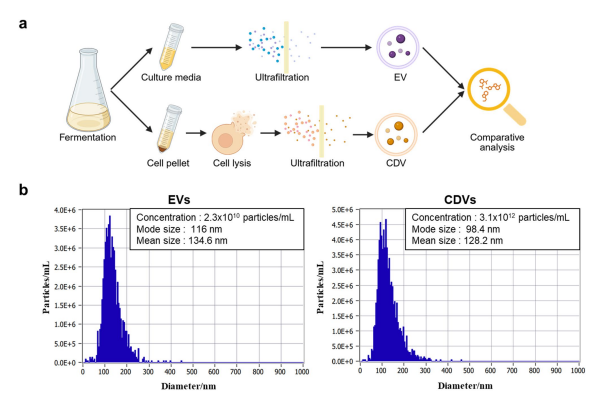 바이오스펙트럼 연구진은 “자연 분비된 EVs와 인공 생성한 CDVs는 단백질 구성과 기능이 명확히 다르다. EVs가 항산화·항염증같은 생리적 활성 측면에서 우위를 차지한다”고 설명했다.