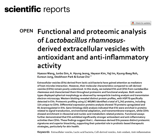이어 “유산균 유래 EVs는 기능성 나노소포체다. 유익균과 숙주 사이에서 신호를 전달하고, 스트레스에 대응하는 역할을 담당한다”고 말했다.