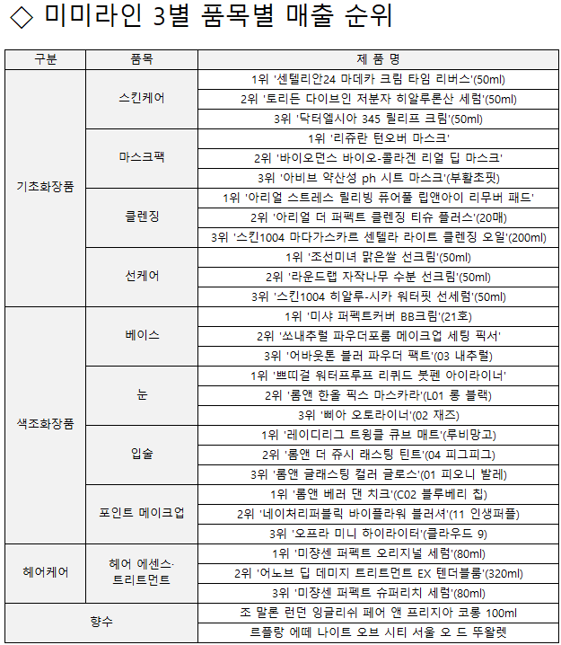 코스모닝이 미미라인 명동점의 3월 매출 데이터를 분석해 품목별 인기제품을 집계했다. 이 자료는 K-뷰티의 실시간 트렌드를 제시하는 바로미터 역할을 할 전망이다.