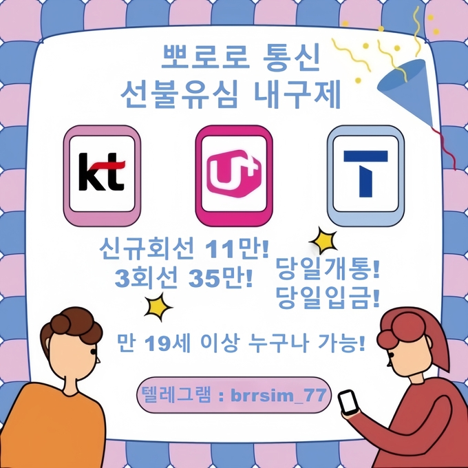어설픈 신규업체,유령 업체에서 시간낭비 하지마시고 5년차 무사고 뽀로로 통신과 함께하세요https://brrsim77.isweb.co.kr