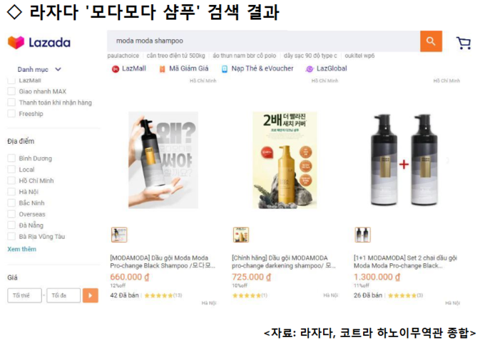 그러나 한국에서 모다모다 샴푸가 간편하고 편리하다는 요인으로 성공을 거두었듯이 베트남에서도 비슷한 방식의 염색 샴푸가 인기를 끌기 시작한 것. 특히 모다모다 샴푸는 동남아 최대 전자상거래 플랫폼 쇼피에 입점하면서 확산이 이뤄졌다.