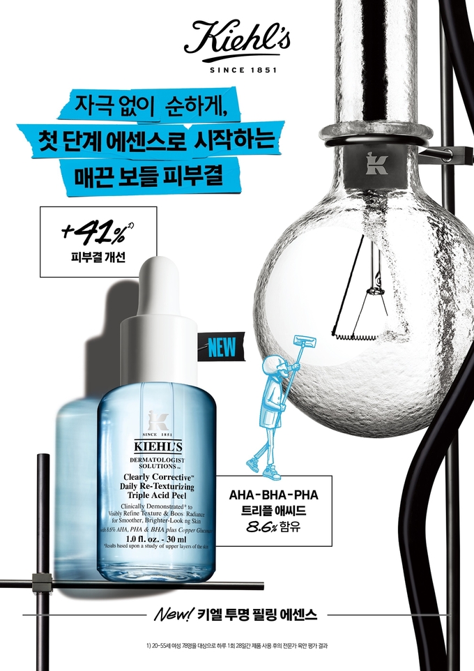 키엘은 20~55세 사이 여성 78명을 대상으로 전문가 육안 평가를 실시했다. 제품 사용 후 △ 피부결 41% 개선 △ 모공 25% 감소 △ 피부 광채 35% 증가 효과를 확인했다.