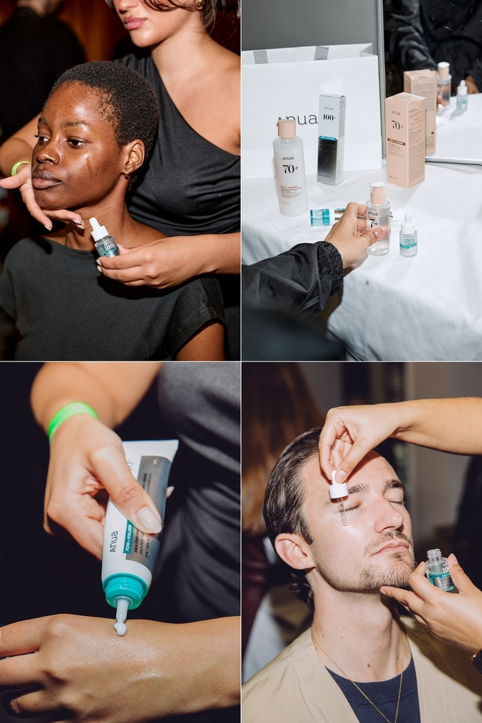 아누아는 모델들에게 PDRN 세럼‧크림‧마스크팩과 라이스 토너‧세럼을 활용했다. 촉촉한 사용감과 풍부한 보습력을 가진 제품으로 메이크업의 완성도를 높였다.