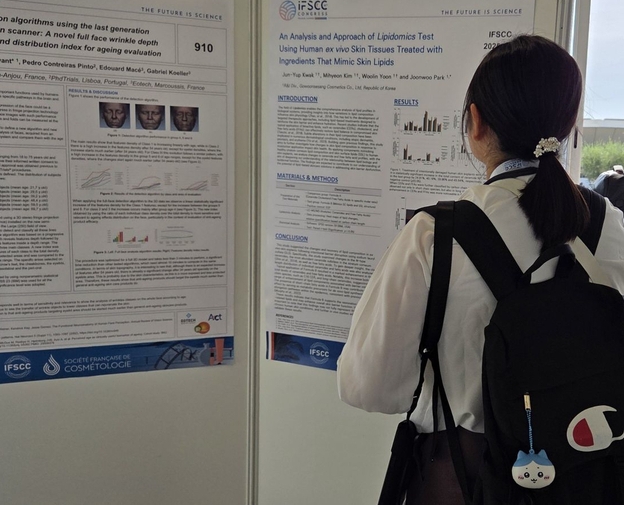 포스터 주제는 ‘피부 지질 모사 성분을 처리한 인체 피부 조직(Ex Vivo)을 이용한 지질체학(Lipidomics)적 분석 및 접근’이다.