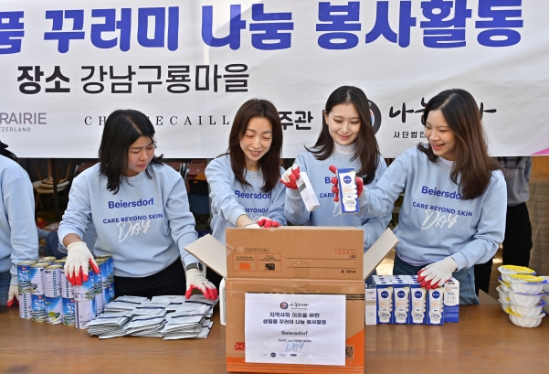 생필품 꾸러미는 니베아‧유세린 화장품과 식료품 등으로 구성했다. 바이어스도르프코리아, 라프레리코리아, 샹테카이코리아 임직원 118명이 꾸러미 만들기에 참여했다. 임직원들은 봉사활동을 통해 상생과 배려의 가치를 되새겼다.