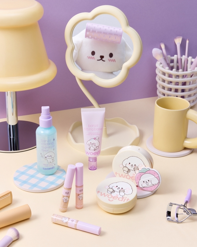 투에딧˟세숑 에디션은 커버력과 피부 표현에 초점을 맞췄다. 동글동글하고 귀여운 세숑 캐릭터로 디자인해 감성을 더했다. 밀착 베이스, 커버 쿠션, 픽서 등으로 구성했다.