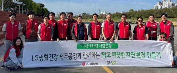 LG생활건강이 ESG 경영 활동의 일환으로 지난 16일 청주 무심천 일대에서 ‘1사 1하천 사랑 캠페인’을 진행. 1사 1하천 사랑 운동은 청주시가 주관하는 환경 보호 실천 활동으로 청주 소재 기업과 단체들이 각각 하나의 지역 하천을 맡아 관리·정화하는 프로그램이다.