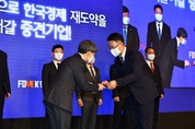 한상근 씨(한국콜마 스킨케어연구소장) 지난 18일 롯데호텔에서 열린 제 6회 중견기업인의 날 행사에서 산업통상자원부장관 표창을 수상. 한 소장은 지난 23년 간 한국콜마 스킨케어연구소에서 근무하며 화장품 기술개발 분야에서 45건의 특허를 획득하는 등 국내 화장품 산업 선진화에 앞장서 온 공로를 인정받아 수상자로 선정됐다. 한 소장은 “임직원 여러분의 노력과 희생으로 발전한 회사의 위상에 힘입은 수상”이라며 “변화와 도전, 협력을 통해 코로나19 위기를 극복하고 한층 점프-업 할 수 있는 계기로 삼겠다”고 수상 소감을 전했다. 산업통상자원부와 중견기업연합회가 공동 개최하는 중견기업인의 날은 경제·산업 발전에 기여한 중견기업의 성과를 알리고 기업인의 사기를 고취하기 위한 행사로 2015년 시작해 올해로 6회째를 맞았다. 사진 오른쪽이 한상근 소장.